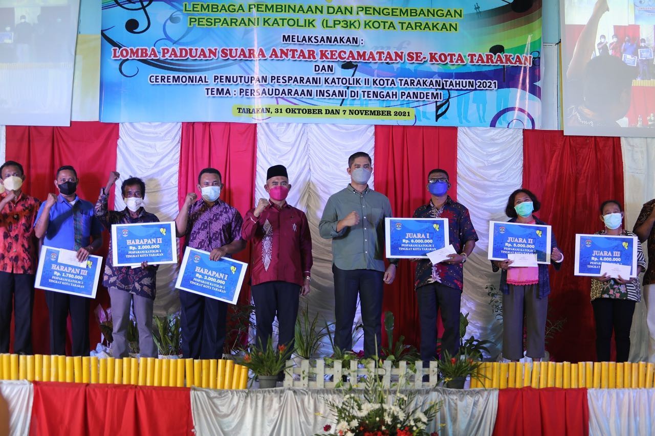 TARAKAN – Pegelaran Pesta Paduan Suara Gerejani (Pesperani) Katolik tahun 2021 berlangsung dengan lancar dan secara resmi ditutup oleh Wali Kota Tarakan, dr. H. Khairul, M.Kes., pada Minggu, 7 November 2021 di Aula Paroki Santo Yosef Pekerja Juata.