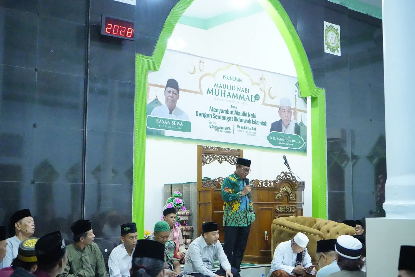 TARAKAN – Wakil Wali Kota Tarakan, Ibnu Saud Is, menghadiri peringatan Maulid Nabi Muhammad SAW 1447 H/2025 M di Masjid At-Taubah, RT 54, Kelurahan Karang Anyar.